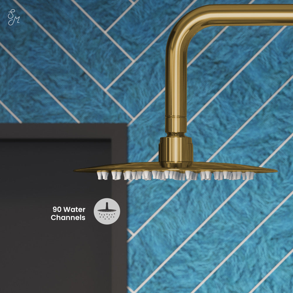 • Stainless Steel and Brass: Shower heads with a sleek brass finish provide easy cleaning, durable construction, and versatile design options.