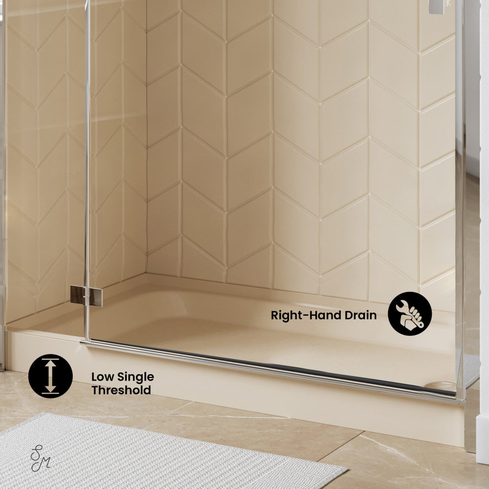 Voltaire 60" x 32" Single-Threshold, Right-Hand Drain, Shower Base in Biscuit