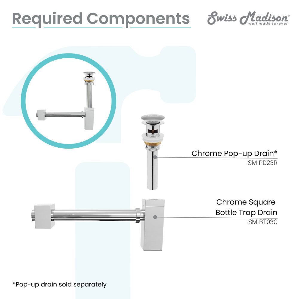 Square Bottle Trap Drain, Chrome