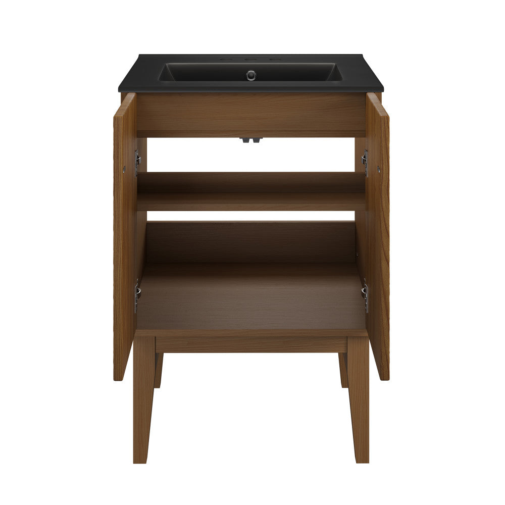 Bosse 24" Freestanding Bathroom Vanity in Brown Oak with Black 3-Hole Centerset Sink Top