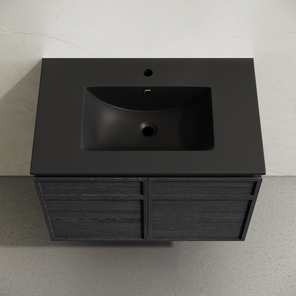 Capture the essence of coastal sophistication with the St. Tropez collection, evoking the breezy allure of Mediterranean living. Transform your bathroom into a sanctuary of style and functionality with our exquisite bathroom vanities, meticulously crafted to reflect your unique taste. Offered in black oak with a matte black sink top.