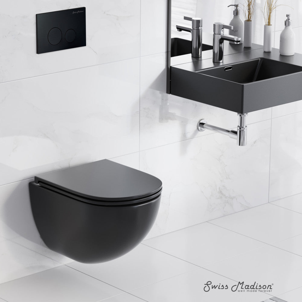 Capture the essence of coastal sophistication with the St. Tropez collection, evoking the breezy allure of Mediterranean living. Optimize space and aesthetics with our wall-mount toilets, offering a clean and polished look with seamless integration. Offered in black with a matte finish and black hardware