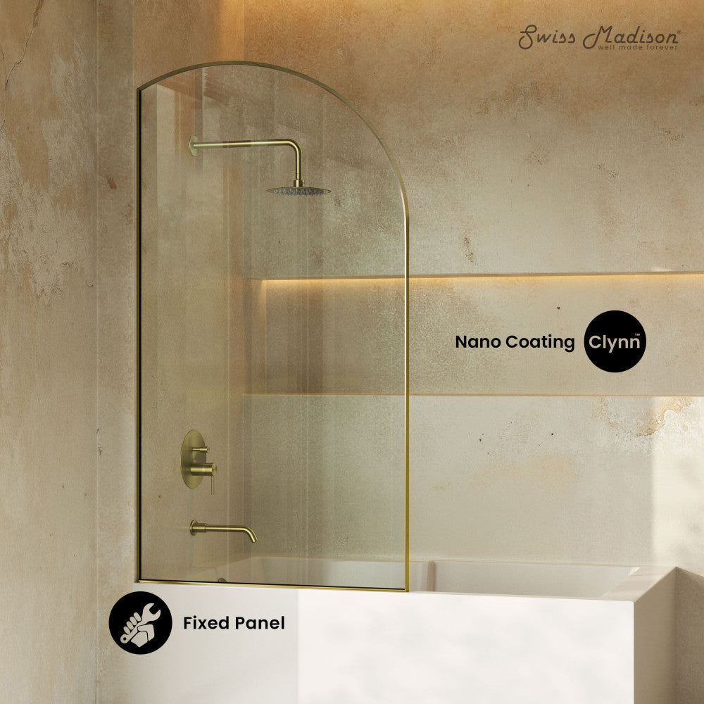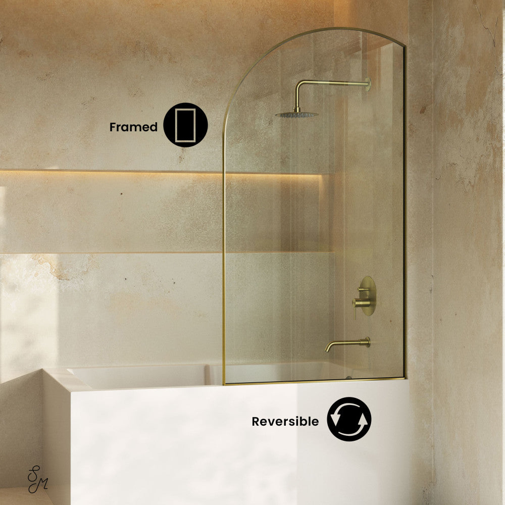 Infuse your living space with the understated elegance of the Demi Collection, where minimalist design seamlessly merges with refined aesthetics, creating an ambiance that effortlessly redefines modern simplicity with timeless sophistication. Elevate your bathing experience with our tub doors, designed to combine sleek design and functionality. Offered in gold with a brushed finish.