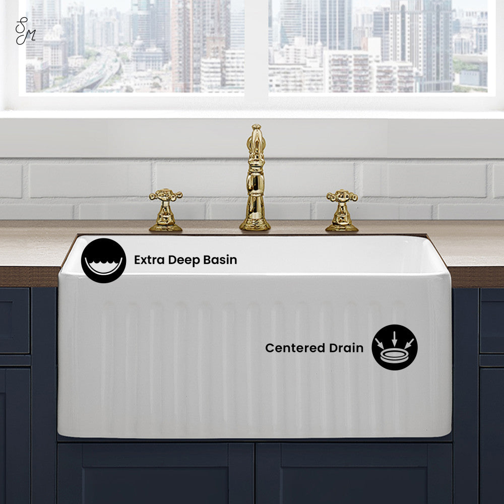 - Reversible Apron: Designed with a fluted textured side and a smooth flat side so you can decide how you want to install based on your aesthtic preference.