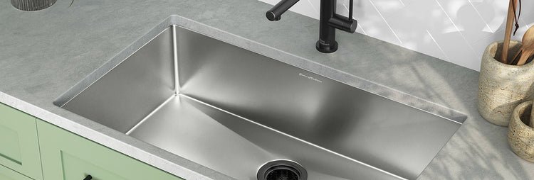 Undermount kitchen sinks designed to create a seamless countertop appearance and simplify cleaning.