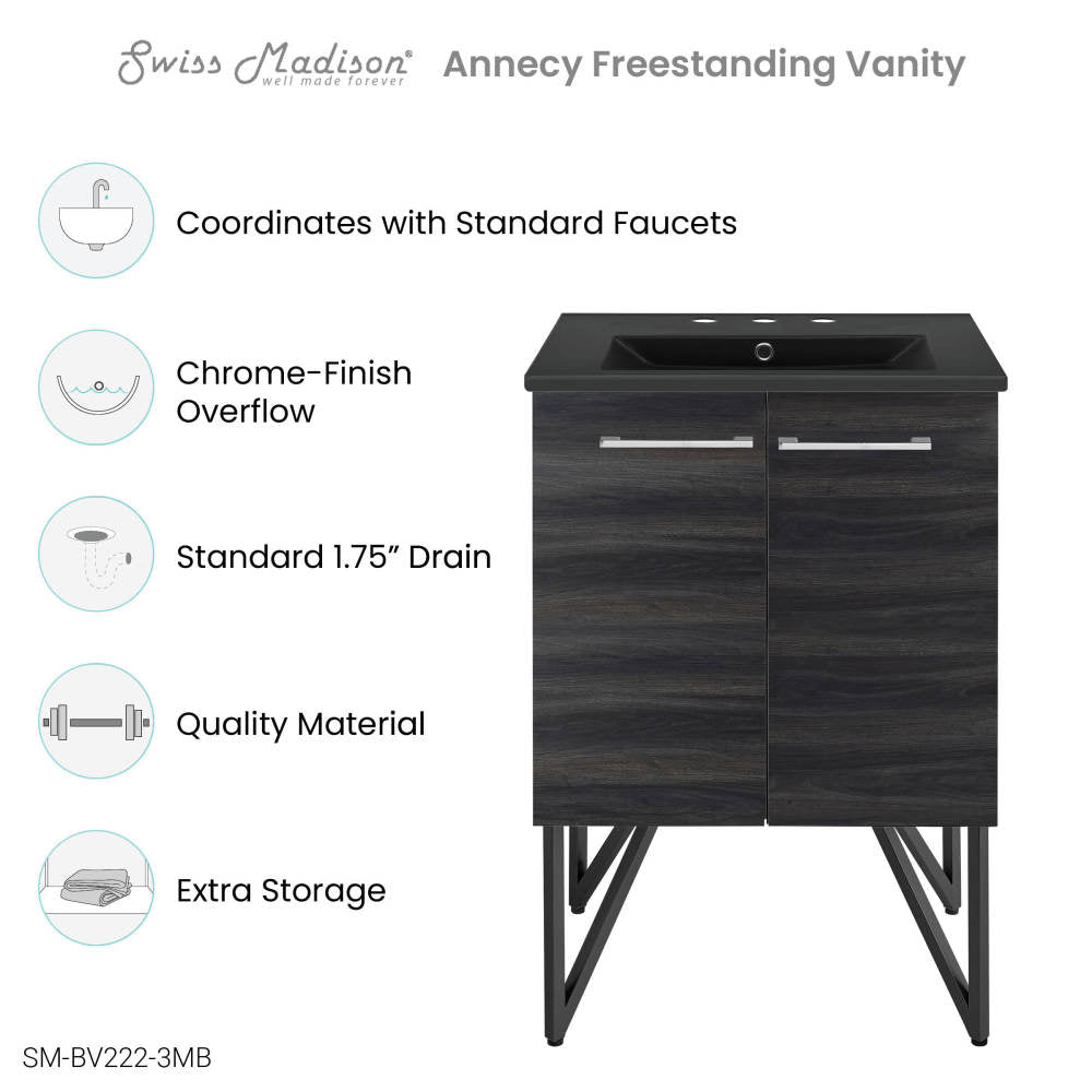 Annecy 24 in. Black Walnut Bathroom Vanity With Black, 3-Hole Ceramic Sink Top