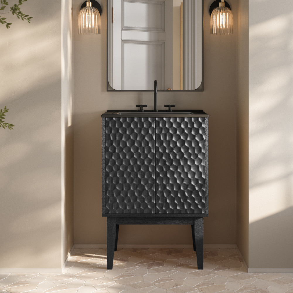 Bosse 24" Freestanding Bathroom Vanity in Black Oak with Black 3-Hole Centerset Sink Top
