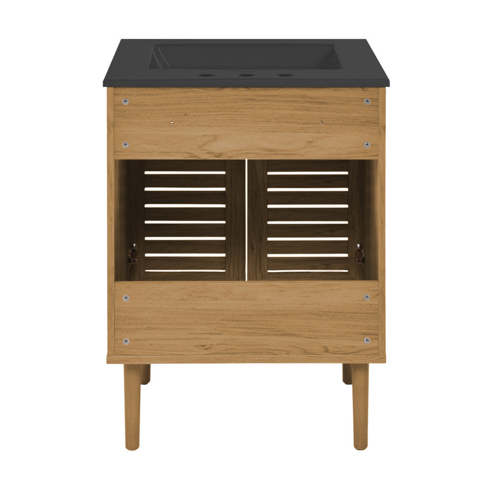 Bron 24" Freestanding Bathroom Vanity in Golden Oak with Black 3-Hole Centerset Sink Top