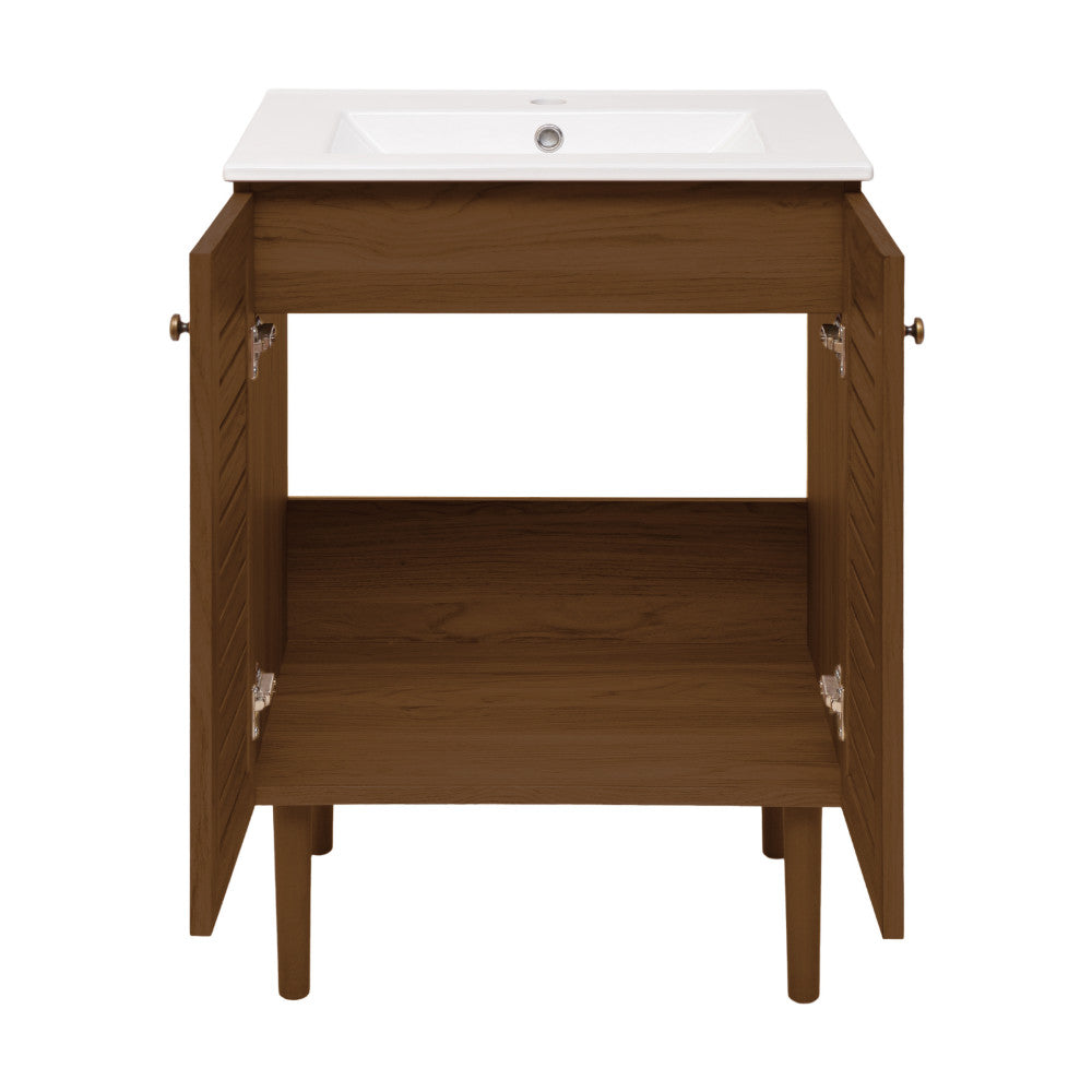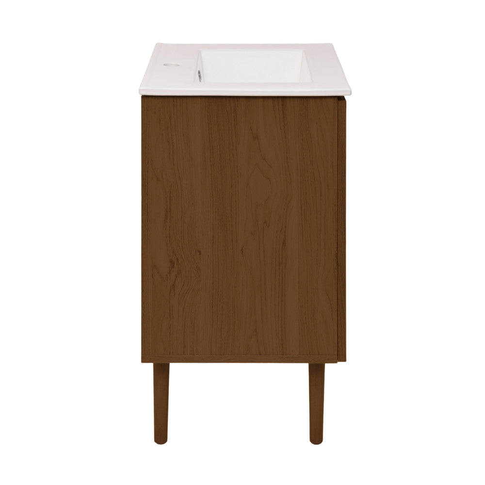 Bron 24" Freestanding Bathroom Vanity in Brown Oak with Sink Top