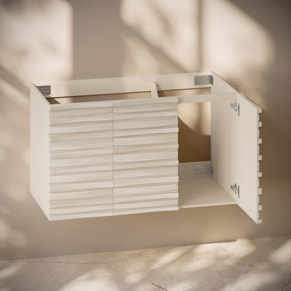 Immerse yourself in the gentle flow of design with the Cascade collection, where fluid lines and captivating forms create an atmosphere of tranquil beauty. Tailor your bathroom to perfection with our cabinets-only vanities, offering customizable vanity top solutions to integrate with your design vision. Offered in white oak.