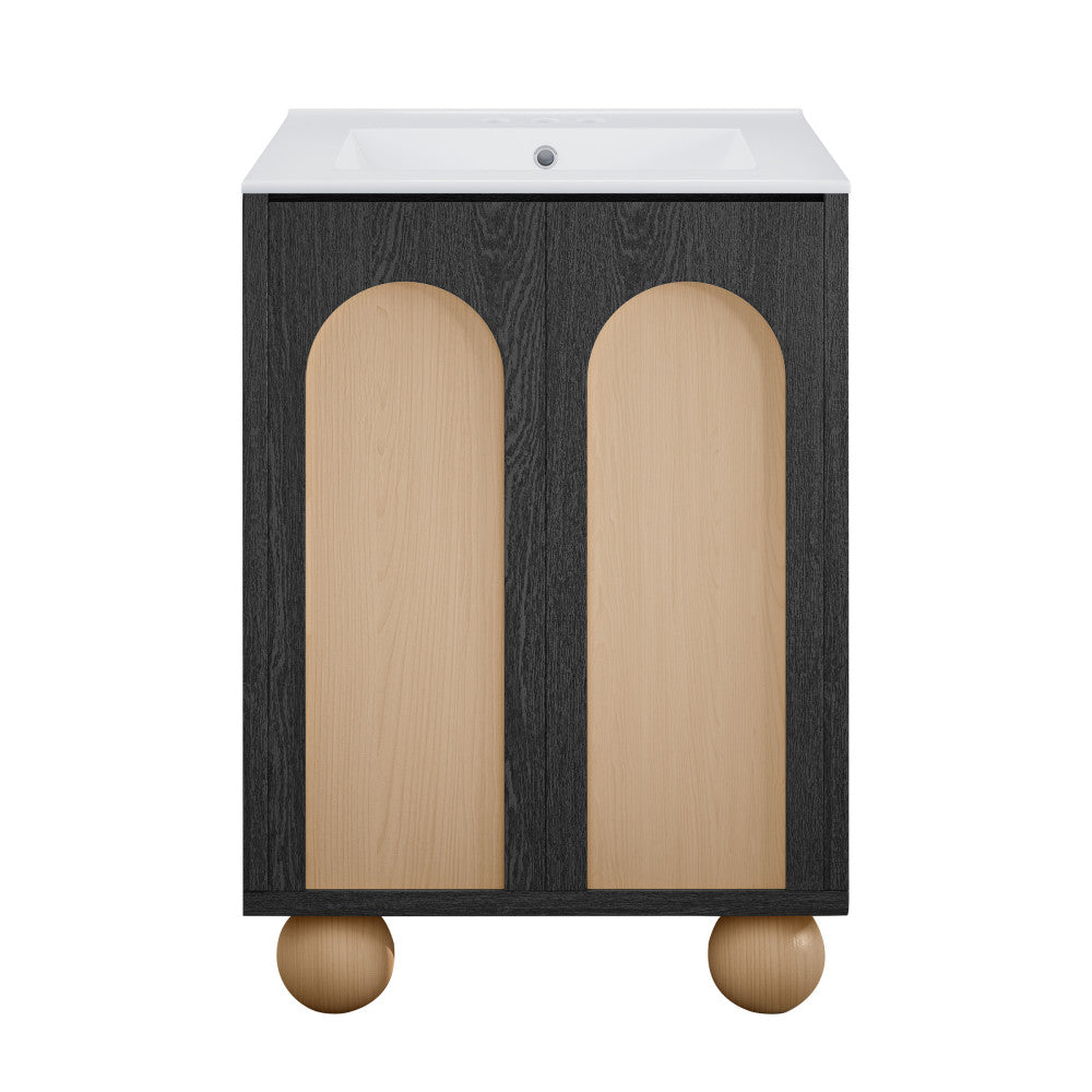 Infuse your home with the joyous essence of the Plaisir collection, where comfort and style converge effortlessly. Transform your bathroom into a sanctuary of style and functionality with our exquisite bathroom vanities, meticulously crafted to reflect your unique taste. Offered in black oak with a glossy white sink top.