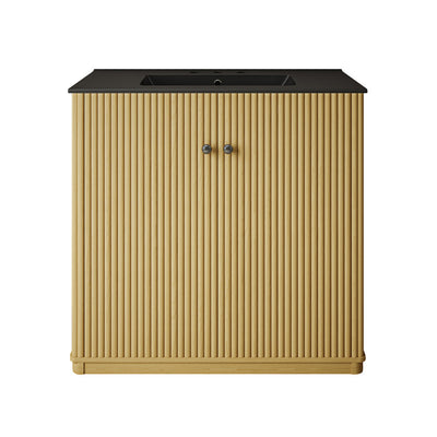 Delice 36" Freestanding Bathroom Vanity in Natural Oak with Black Sink Top