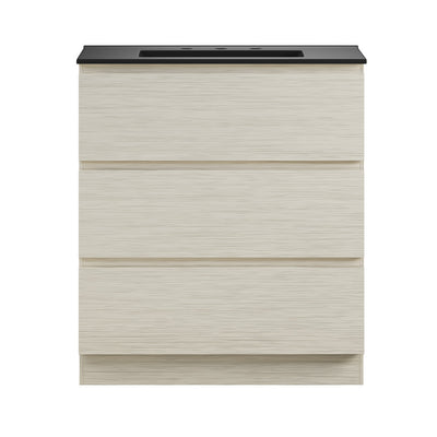 Liberte 30" Freestanding Bathroom Vanity in White Oak with Black 3-Hole Widespread Sink Top