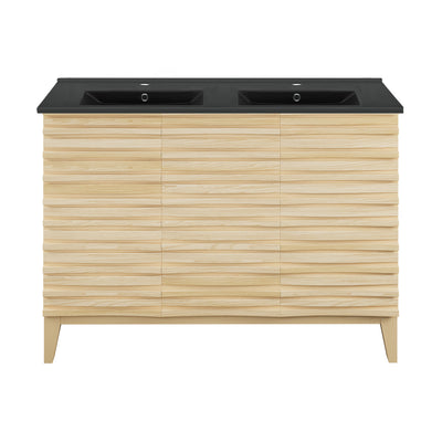 Cascade 48 in. Natural Oak, Double Basin Bathroom Vanity With Black Ceramic Sink Top