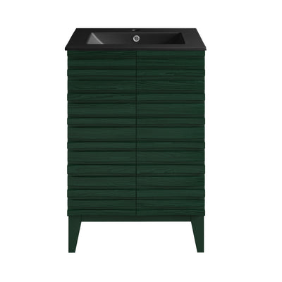 Cascade 24" Freestanding Bathroom Vanity in Green Oak with Black 3-Hole Centerset Sink Top