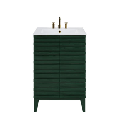 Cascade 24" Freestanding Bathroom Vanity in Green Oak with 3-Hole Centerset Sink Top