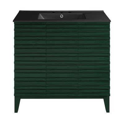 Cascade 36" Freestanding Bathroom Vanity in Green Oak with Black Sink Top