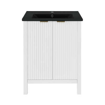 Bastille 24 in. White Bathroom Vanity With Black Ceramic Sink Top