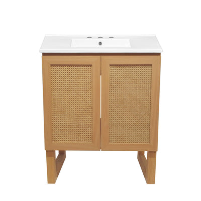 Arles 30 in. Natural Oak Bathroom Vanity With White, 3-Hole Ceramic Sink Top