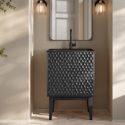 Bosse 24" Freestanding Bathroom Vanity in Black Oak with Black Sink Top