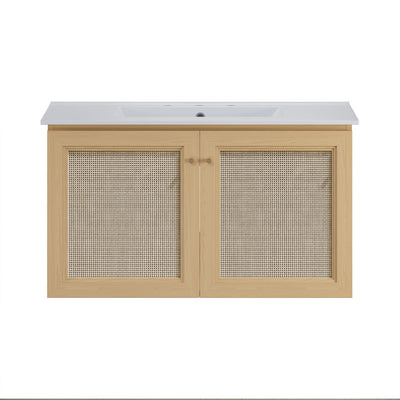 Classe 36" Wall-Mounted Bathroom Vanity in Natural Oak with Single Faucet Hole Vanity Top
