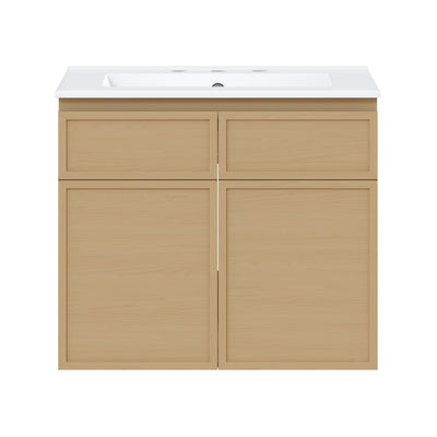 Classe 30" Wall-Mounted Bathroom Vanity in Natural Oak with Widespread Faucet Holes Vanity Top