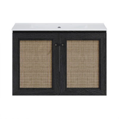 Claire 30" Wall-Mounted Bathroom Vanity in Black Oak with Sink Top