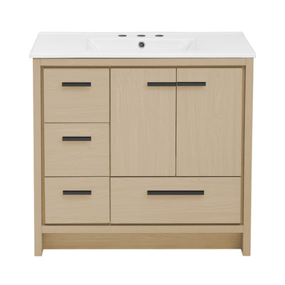 Virage 36 in. Brown Oak Bathroom Vanity With White, 3-Hole Ceramic Sink Top