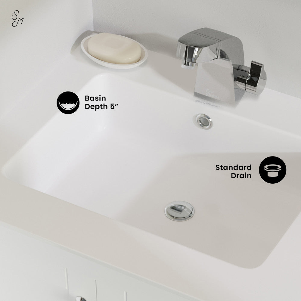 • Single Faucet Hole: Pre-drilled standard 1 3/8” Single Faucet Hole