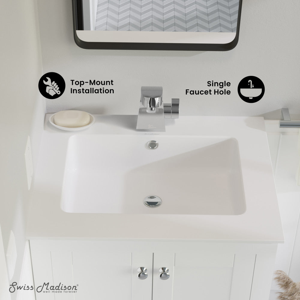 • Top-Mount Installation: Vanity top with integrated bowl provides a seamless and functional design.