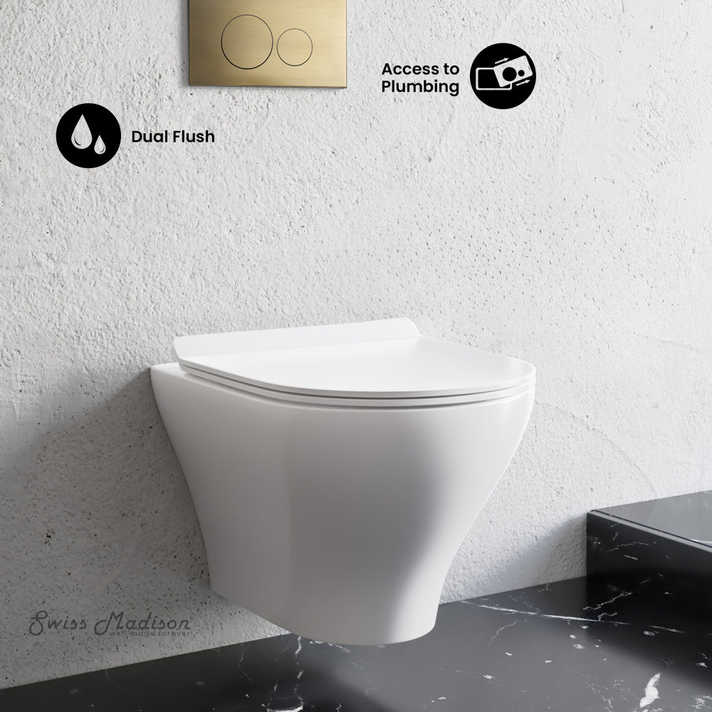 Monaco Wall-Hung Toilet Bundle 0.8/1.6 GPF Dual Flush in Glossy White with Brass Flush Plate