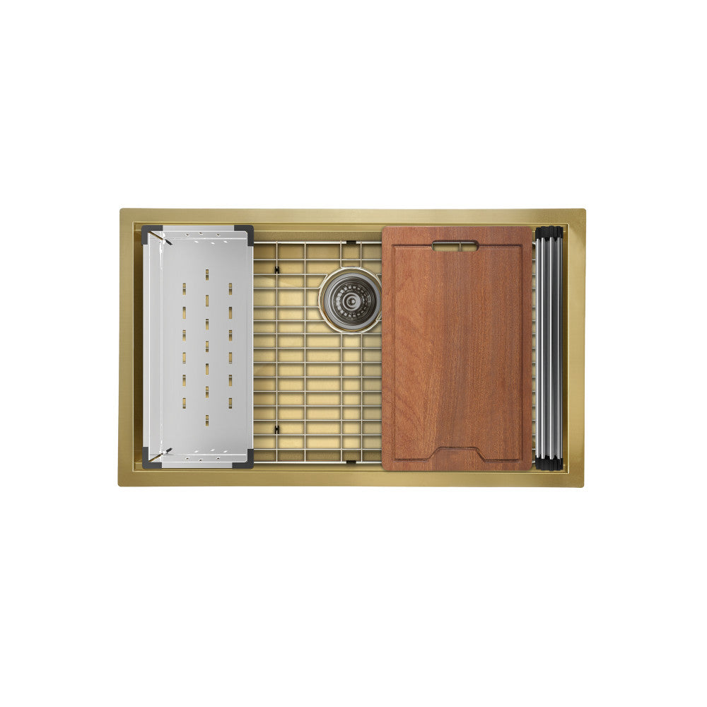 Discover the art of curves and lines with the Tourner collection, where fluid designs redefine contemporary aesthetics. Elevate your kitchen aesthetics with our undermount sinks, showcasing sleek design and maximum counter space. Offered in stainless steel with a brushed gold finish.