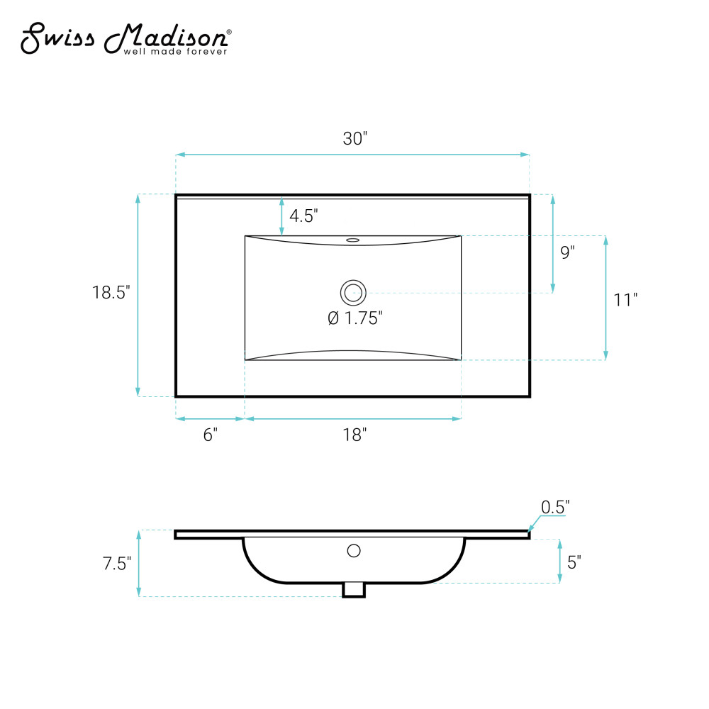 - Basin Depth: 4.9 Inches