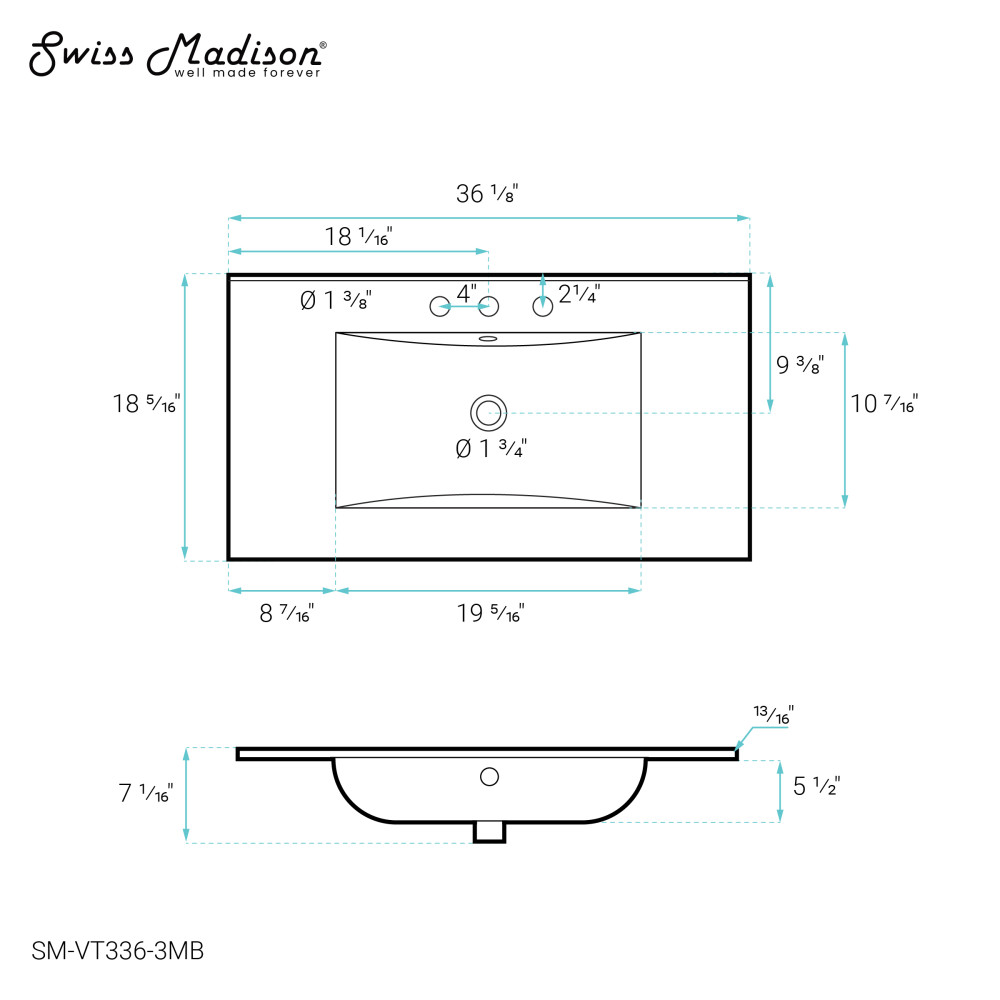 Discover intricate precision and design excellence in the Swiss Madison collection, redefining contemporary bathroom aesthetics. Discover the epitome of seamless design and effortless maintenance with our vanity tops. A perfect blend of aesthetics and functionality. Offered in black with a matte finish.