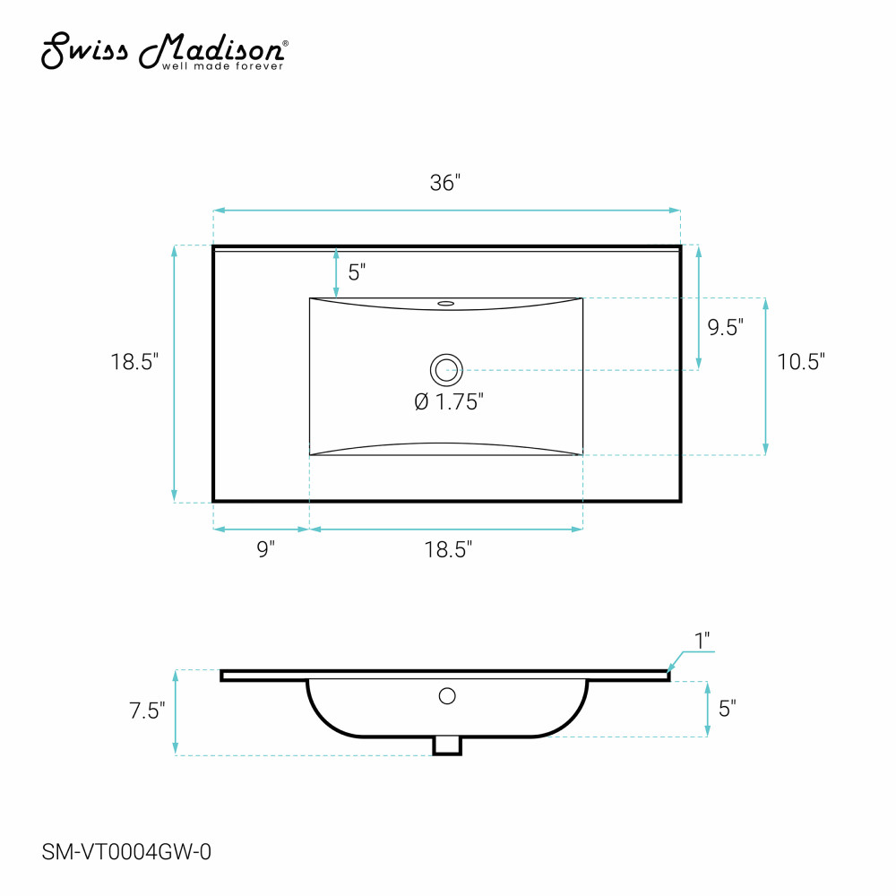 - Top-Mount Installation: Vanity top with integrated bowl provides a seamless and functional design