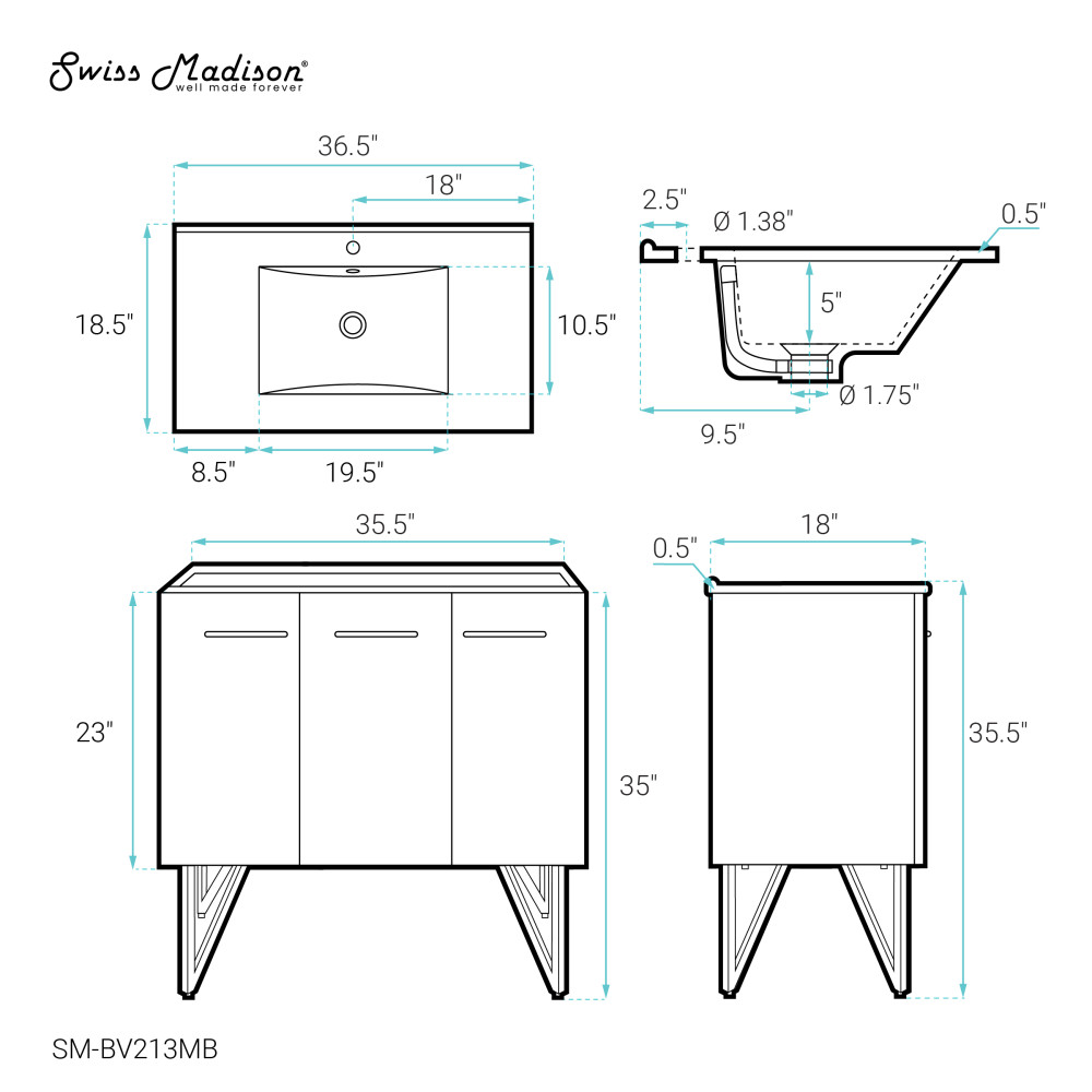 - Faucet hole: Pre-drilled standard 1 3/8"
