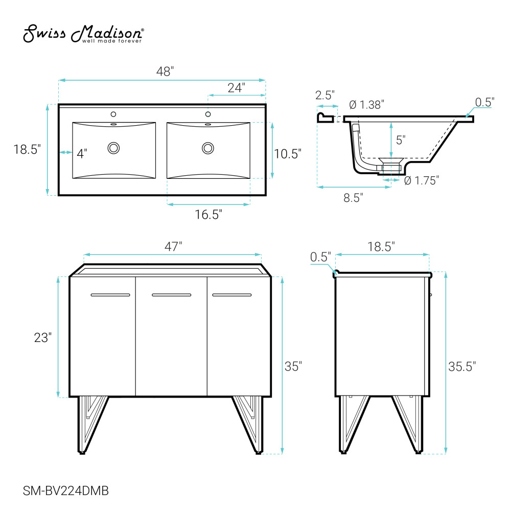 - Faucet hole: Pre-drilled standard 1 3/8"
