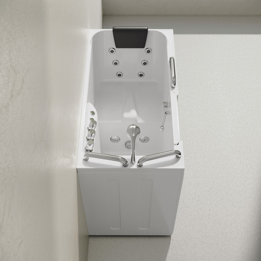 - All-Inclusive Convenience: Comes complete with deckmount faucet, hand sprayer, integrated grab bars, and a waterproof pillow