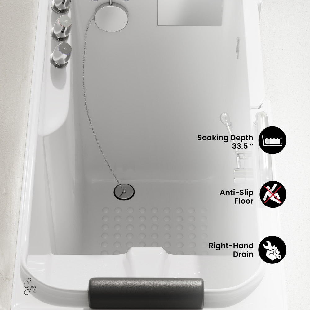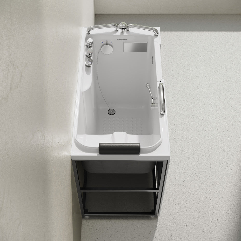 - All-Inclusive Convenience: Comes complete with deckmount faucet, hand sprayer, integrated grab bars, and a waterproof pillow