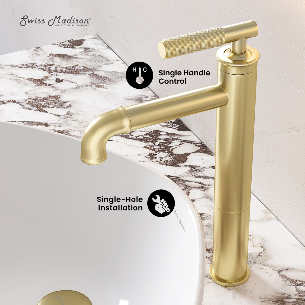 Avallon Single Hole, Single-Handle Sleek, High Arc Bathroom Faucet in Brushed Gold