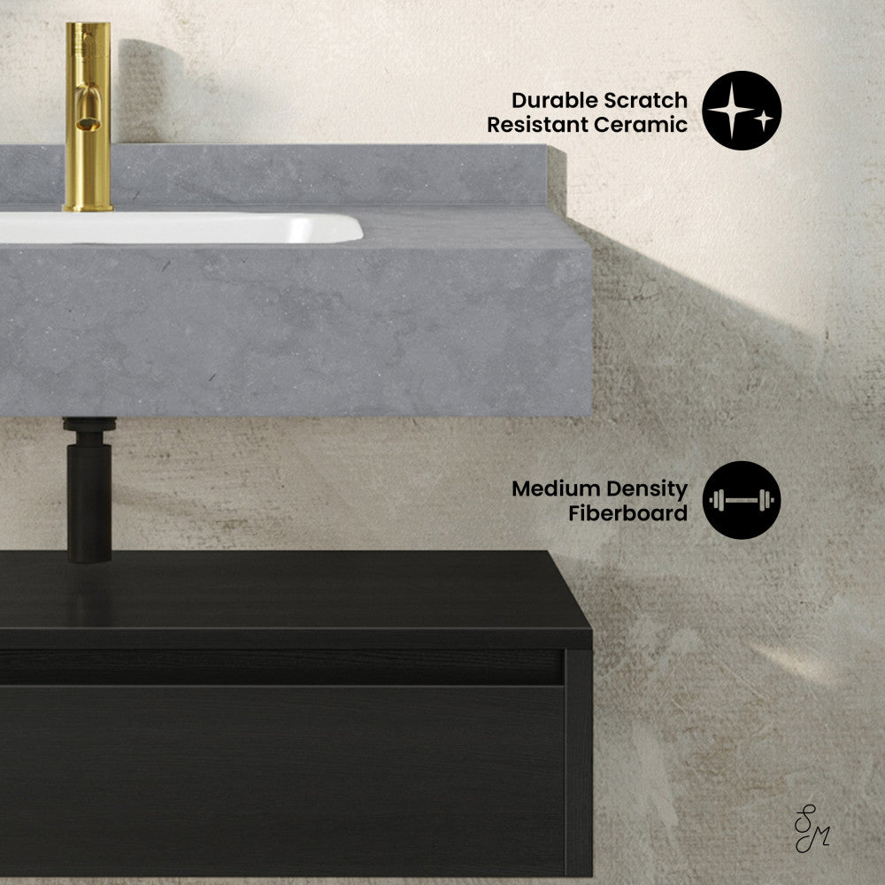 - Sink Material: The vanity top is developed from ceramic, that is scratch-resistant and non-porous, providing a durable and reliable option that can withstand routine use
