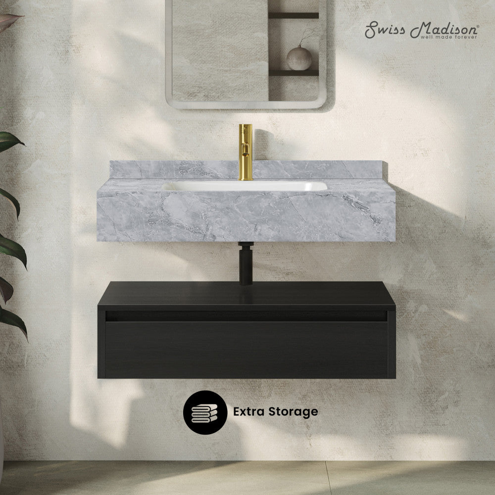 Avancer 36" Wall-Mounted Bathroom Vanity in Black Oak with Storm Gray Sink Top