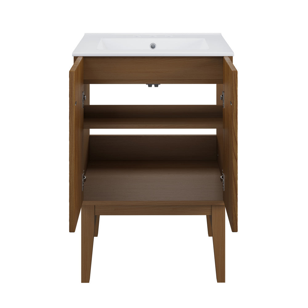 Bosse 24" Freestanding Bathroom Vanity in Brown Oak with 3-Hole Centerset Sink Top