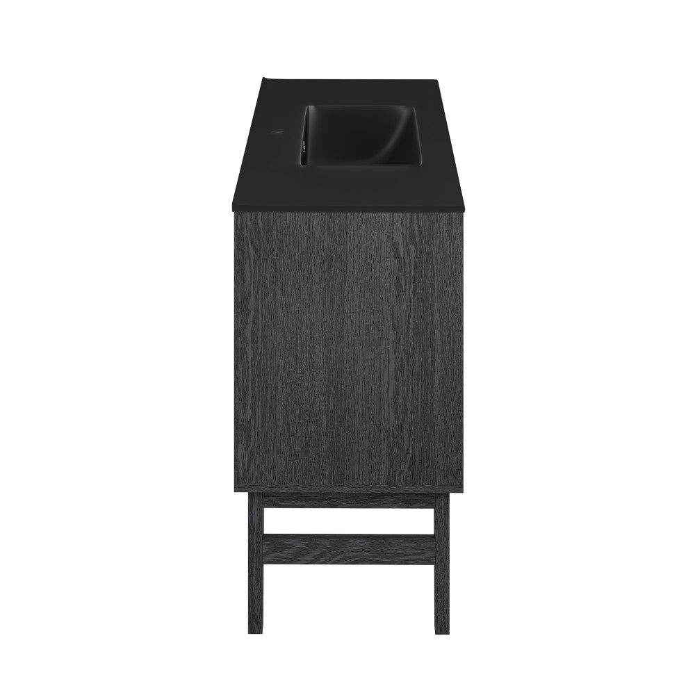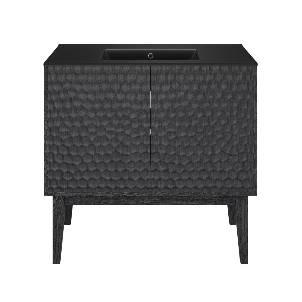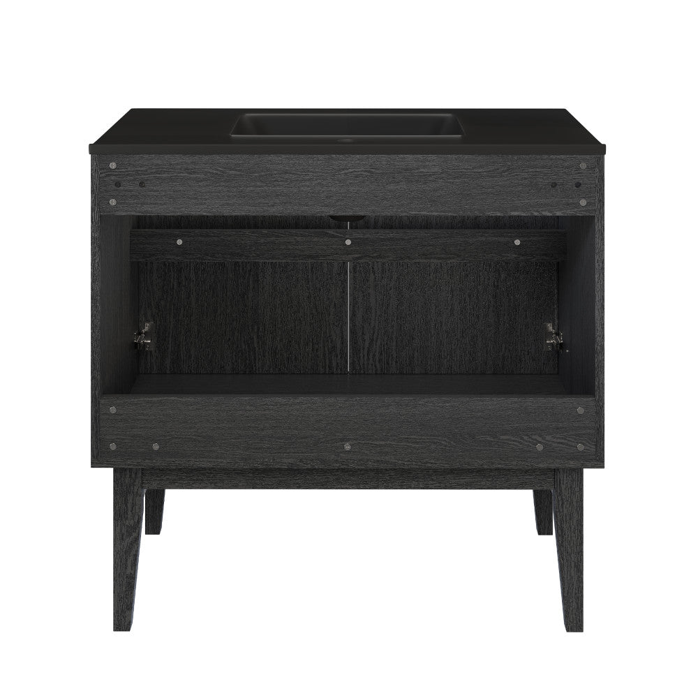 Bosse 36" Freestanding Bathroom Vanity in Black Oak with Black Sink Top