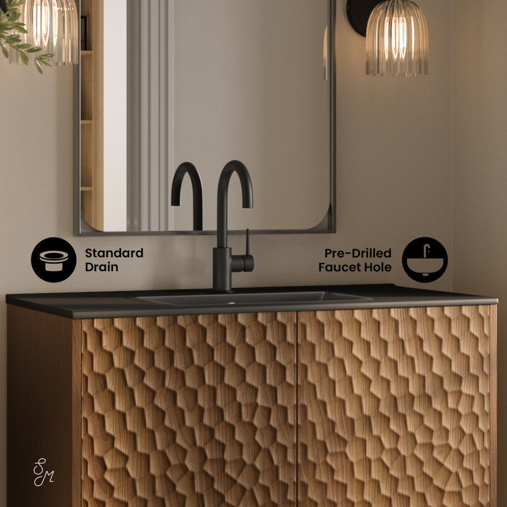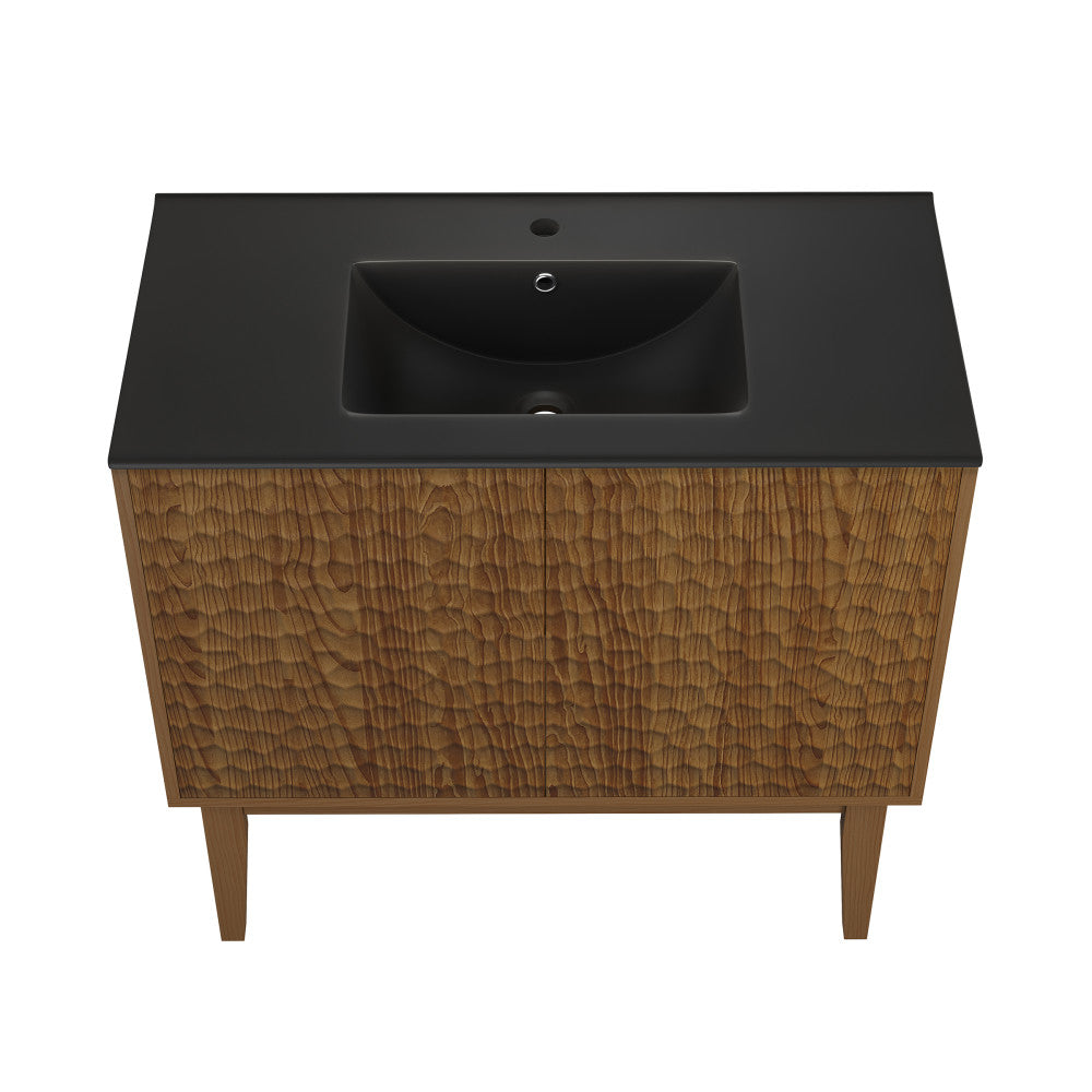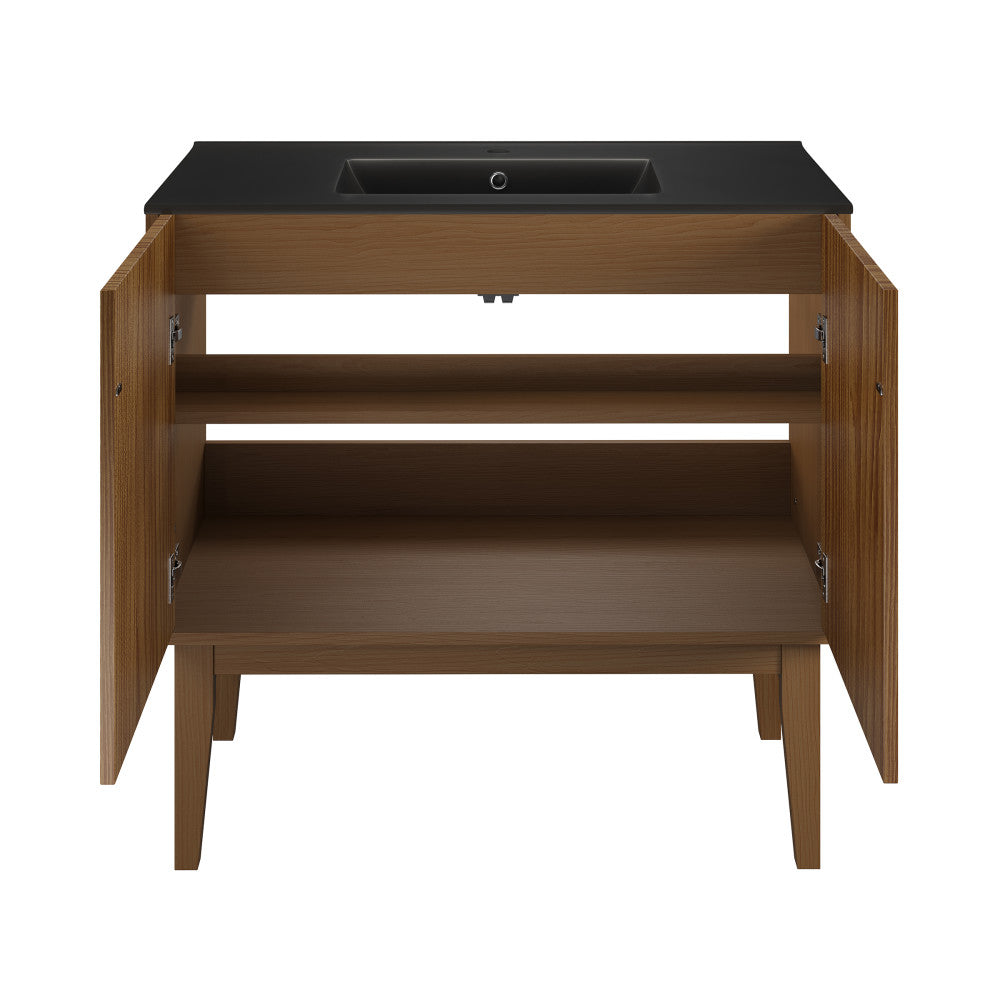 Bosse 36" Freestanding Bathroom Vanity in Brown Oak with Black Sink Top