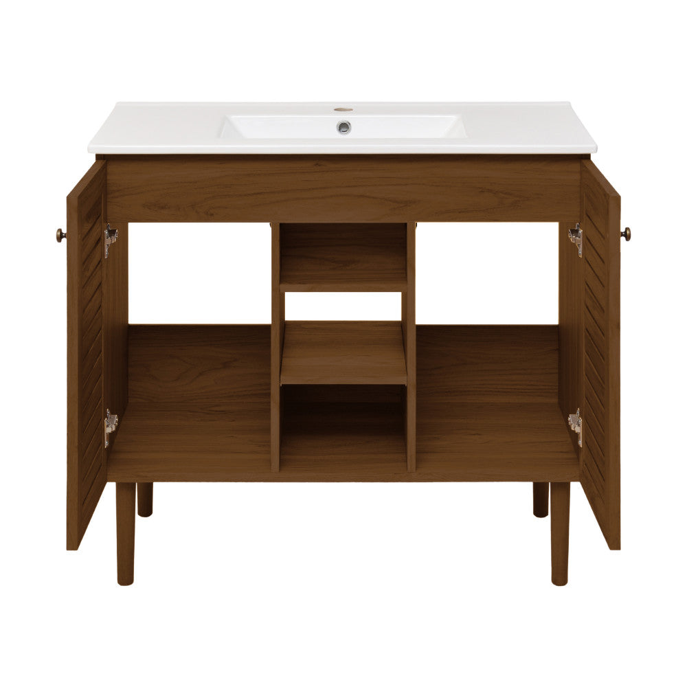 - 2 Doors 3 Open Shelves: Vanities offering two soft closing doors and 3 open shelves enhances your space with slam-free technology, additional storage space and creates an upscale appearance