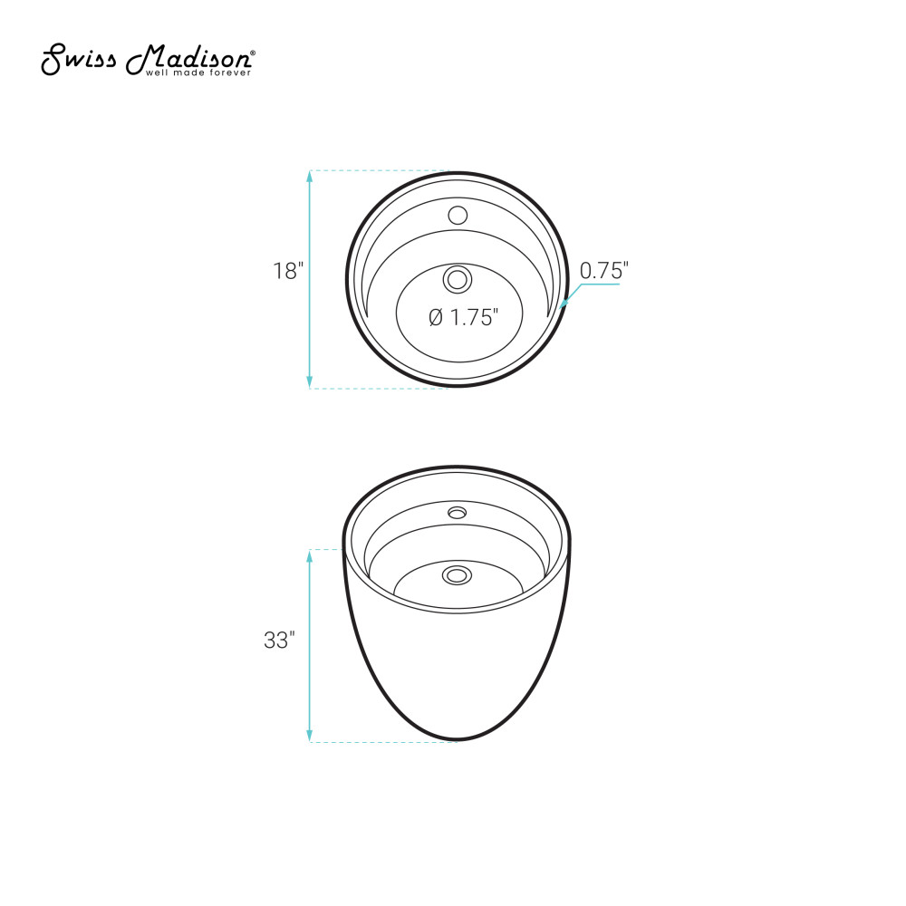 - Drain: Standard 1.75" inch drain opening.