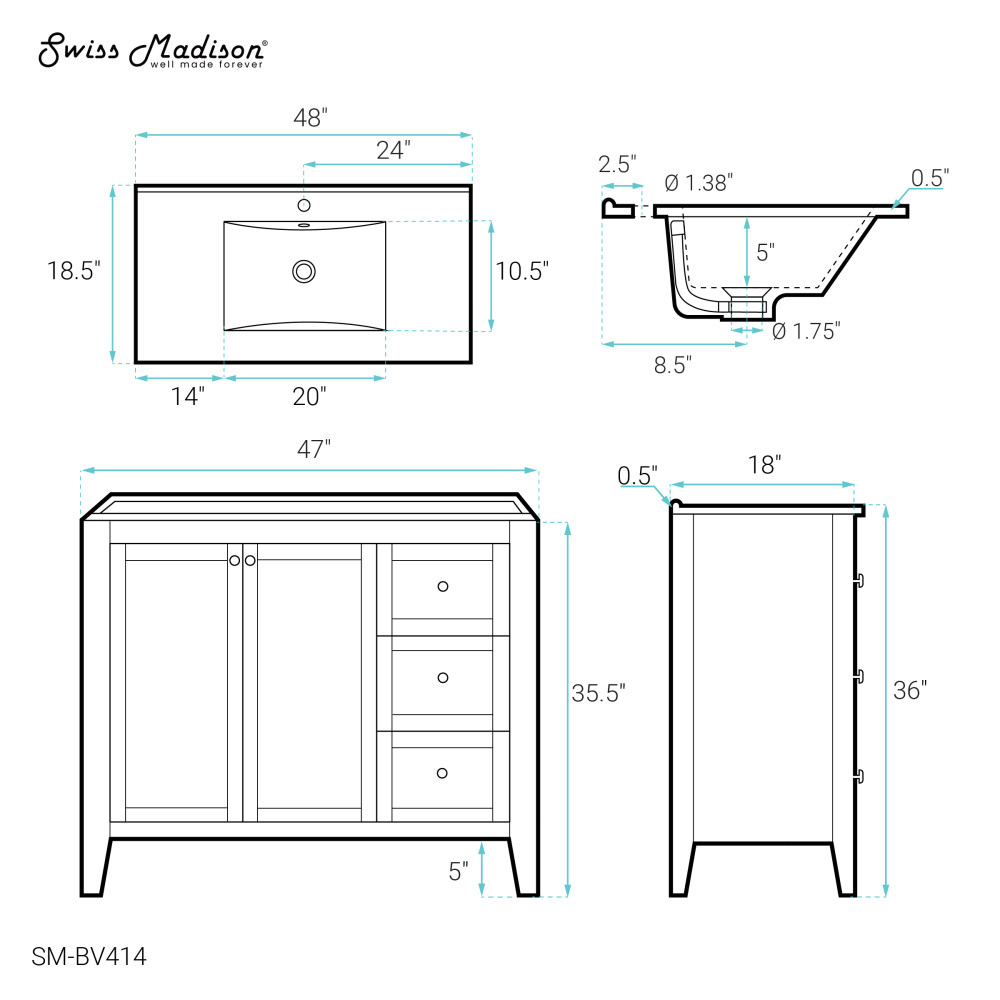 - 2 Doors 3 Drawers: Vanities offering two soft closing doors and three drawers enhances your space with slam-free technology, additional storage space and creates an upscale appearance