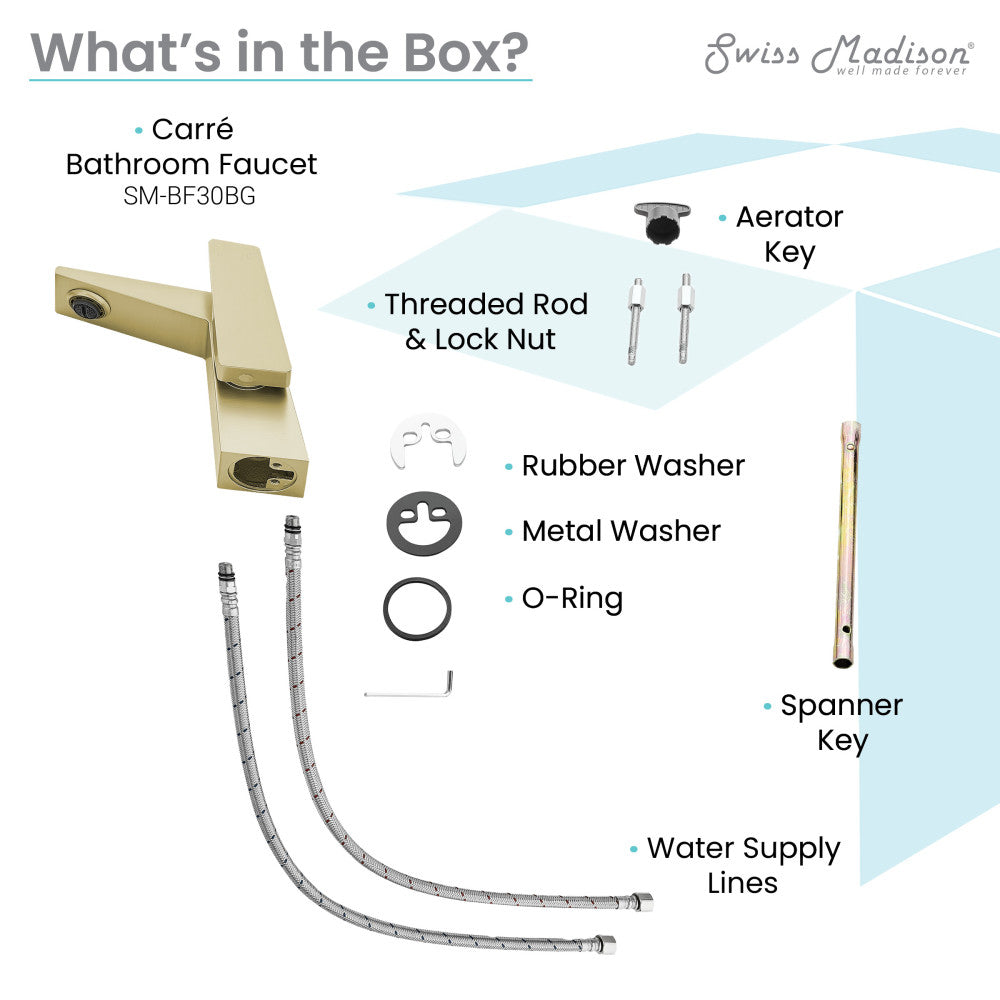 Embrace geometric balance with the Carre collection, where clean lines and modern design principles take center stage. Discover simplicity and sophistication in one with our single-handle faucets, offering smooth operation and contemporary design. Offered in brushed gold.