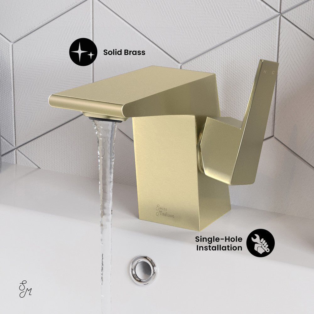 Carre Single Hole, Single-Handle, Bathroom Faucet in Brushed Gold
